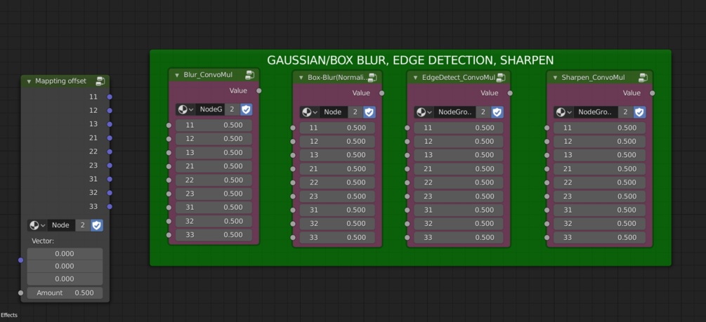This blend files contains node groups for box-blur ,gaussian blur, edge detection and sharpen.